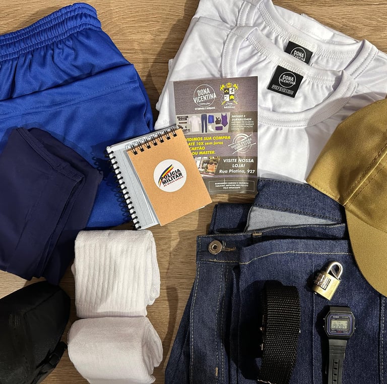 Vestimentas duráveis e confortáveis para uso em campo. Enxoval inicial Curso de Formação de Soldados